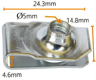 Fastgørelsesorganet kan prale af præcise samlede dimensioner, der måler 24,3 mm i bredden og 14,8 mm i højden, hvilket sikrer en problemfri pasform med fastgørelsespunkter på din bil. Derudover kunne 4,6 mm længden, der er nævnt i bunden af billedet, henvise til en kritisk dimension af en bestemt del, hvilket yderligere understreger produktets professionalisme og præcision.
